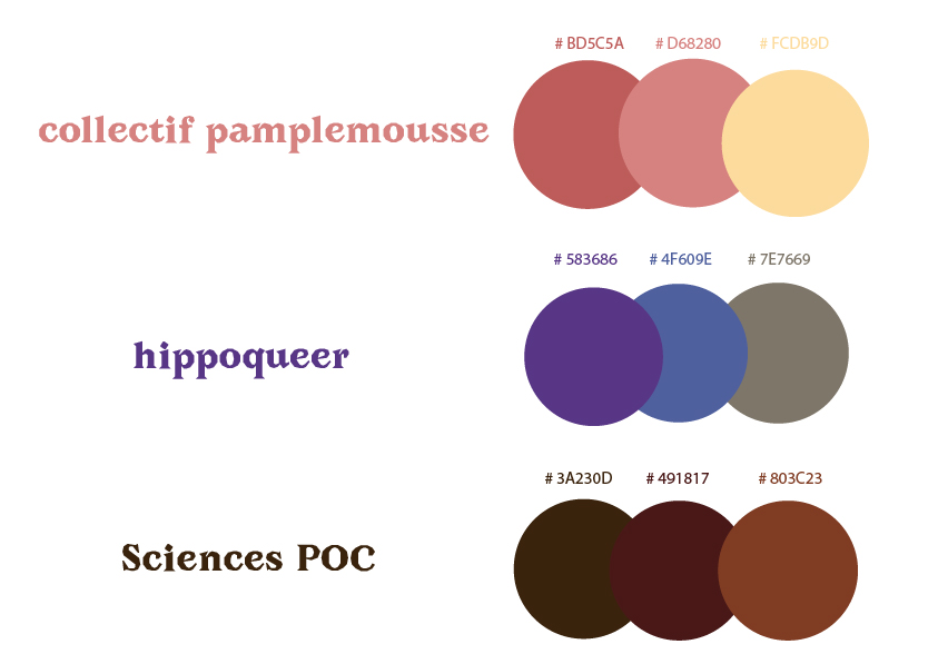 Rebranding of the visual identity for the "Collectif Pamplemousse", an intersectionnal feminist association of the Political Science Studies Institute of Lyon. The logo was completly redesign to be less evocative of a vulva. Designs of instagram layout templates that could be easily reproduced and reused on Canva by any-member of the group. (Canva is a free online software