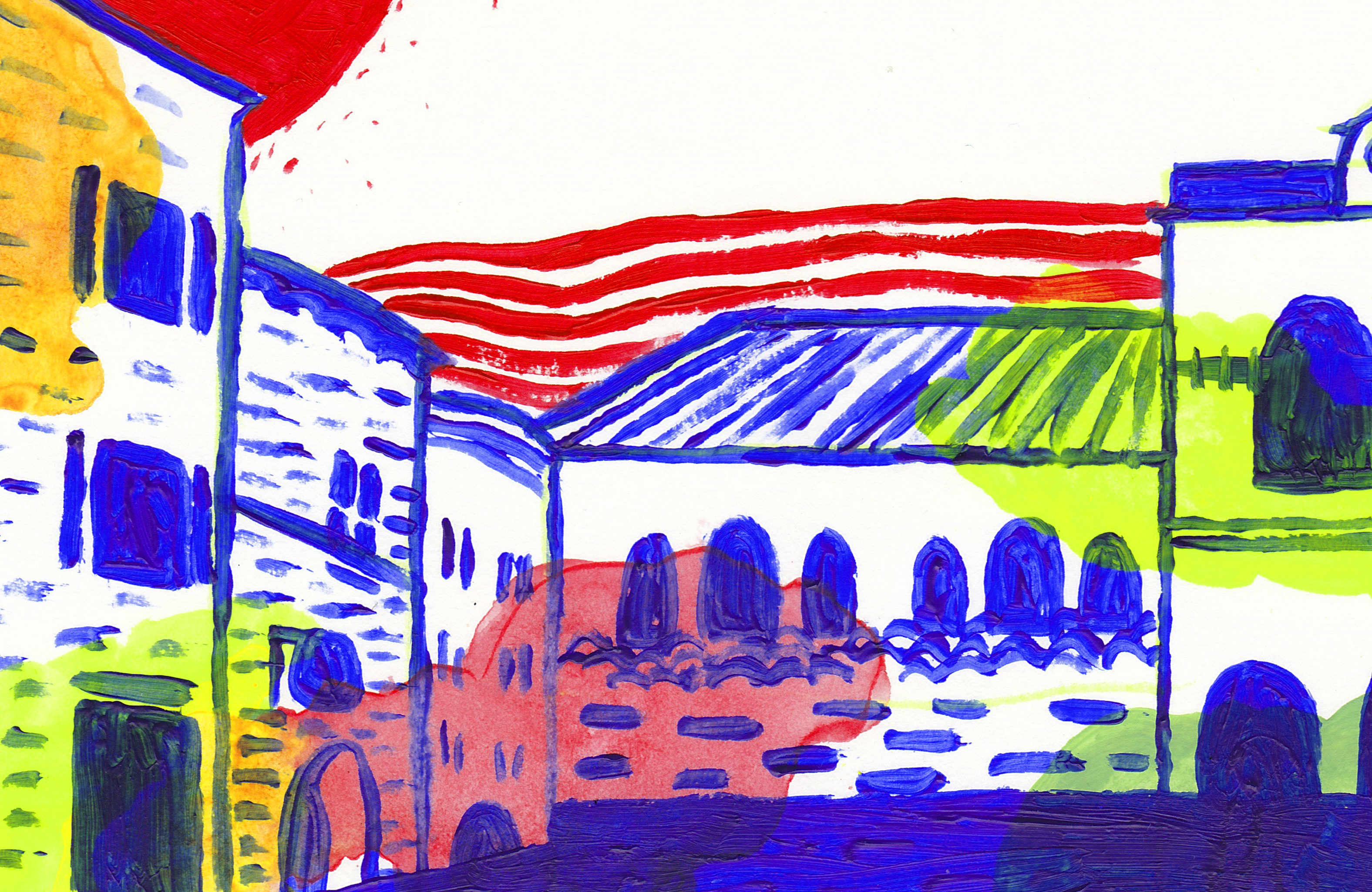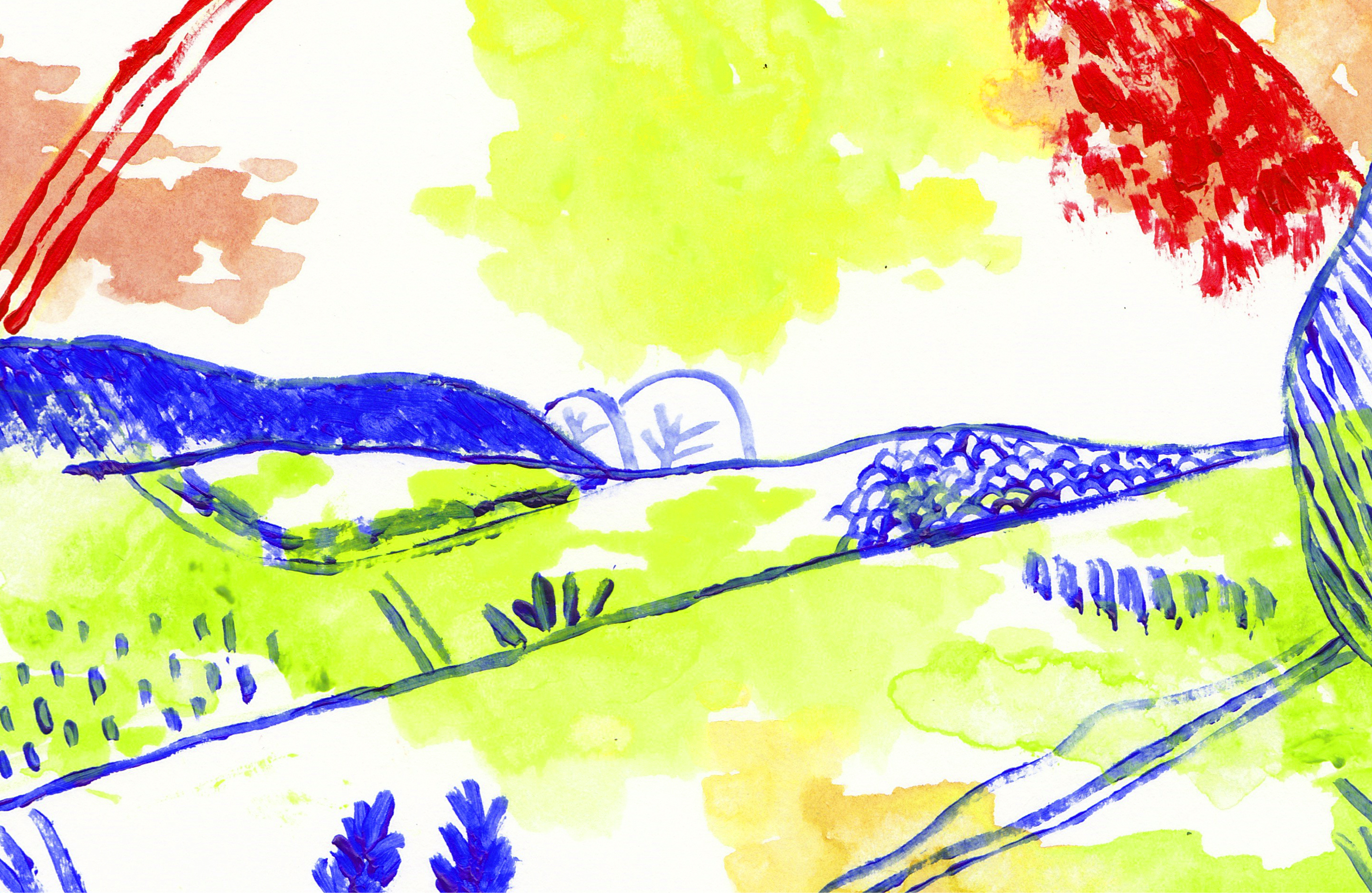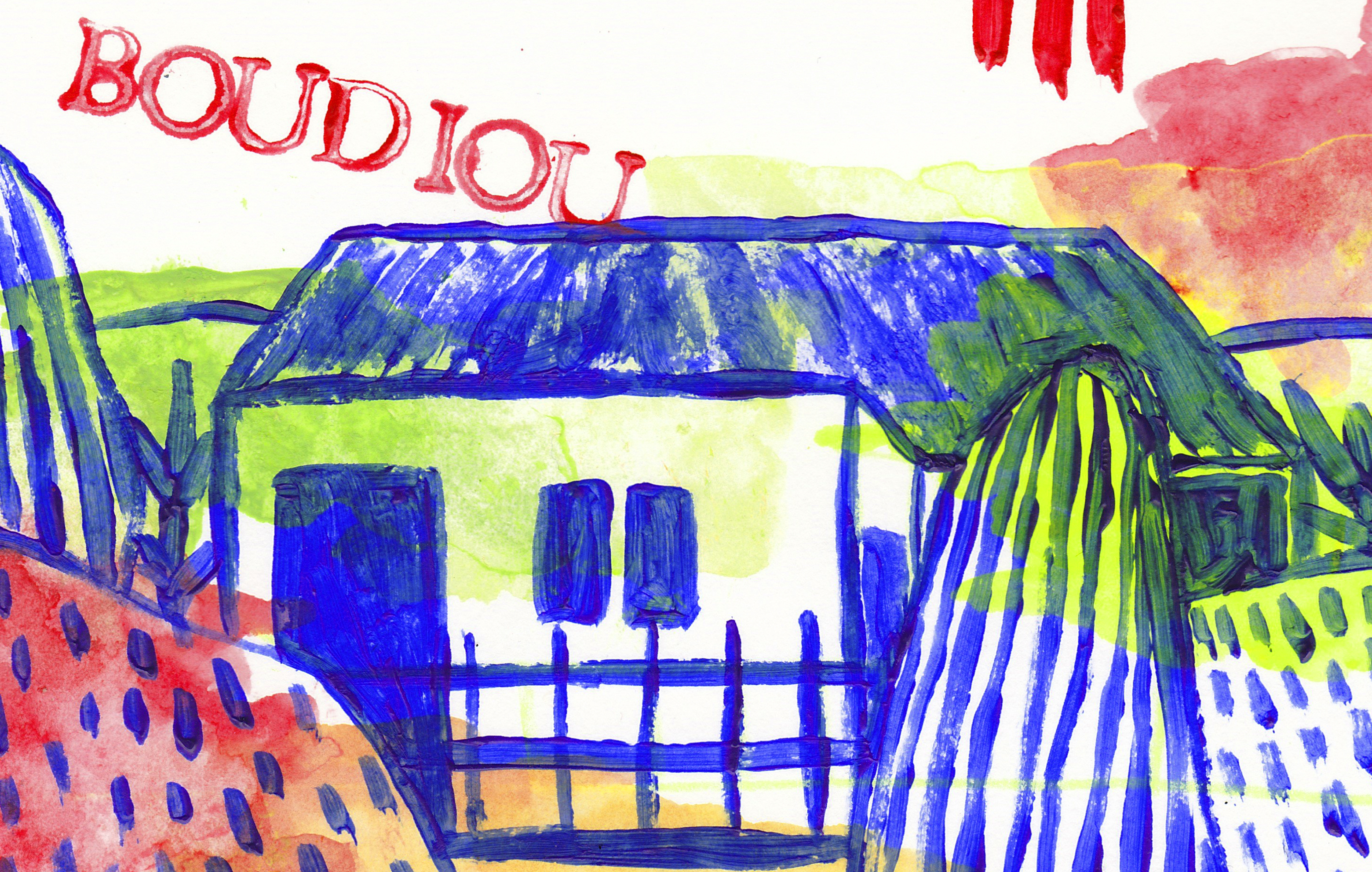 Représentation de mon village d’enfance selon mes souvenirs, en jouant sur la double lecture des images. L’aspect physique de mon village, avec les balades en forêt, les vieux ponts ou encore les potagers. Les couleurs représentent les sensations non définies liées à ses lieux.